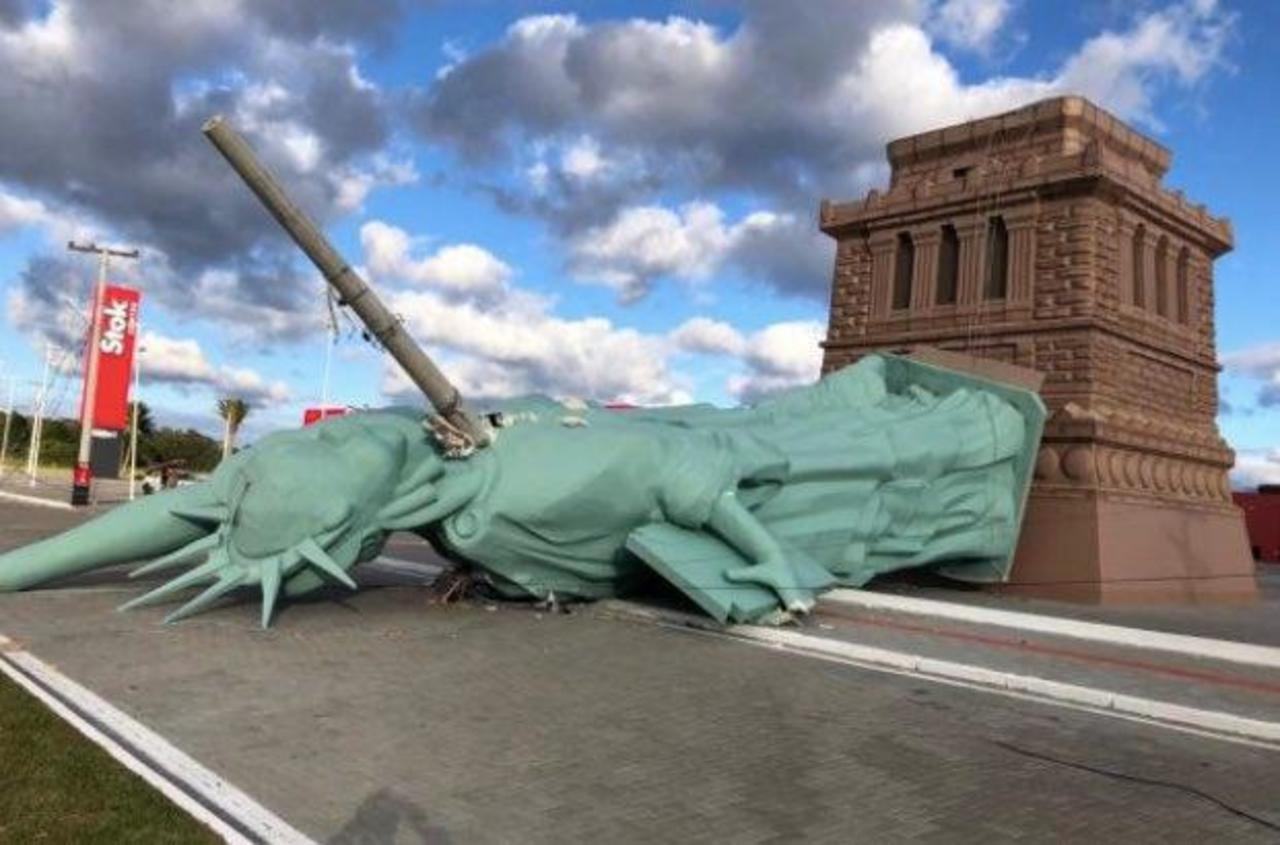 Isso porque a réplica da estátua da liberdade, da loja havan, desabou após a presença de ventos fortes no é possível conferir, no vídeo, que a estátua caiu para frente e atingiu a pista da rodovia.