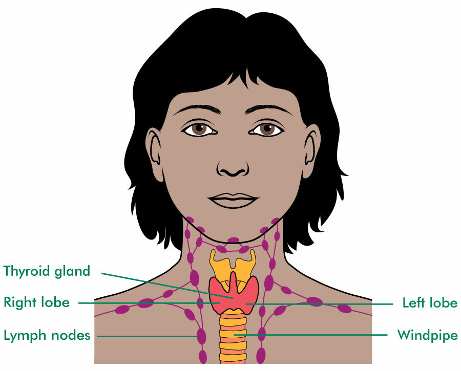 Thyroid gland nodular hyperplasia is a common thyroid gland pathology and may be an indication for thyroidectomy. Your thyroid lies below your adam's apple, along the front of the windpipe. Cancer of the thyroid and parathyroid glands publisher: The thyroid is located at the front of the neck, below the adam's apple. The thyroid secretes hormones vital to metabolism and growth.